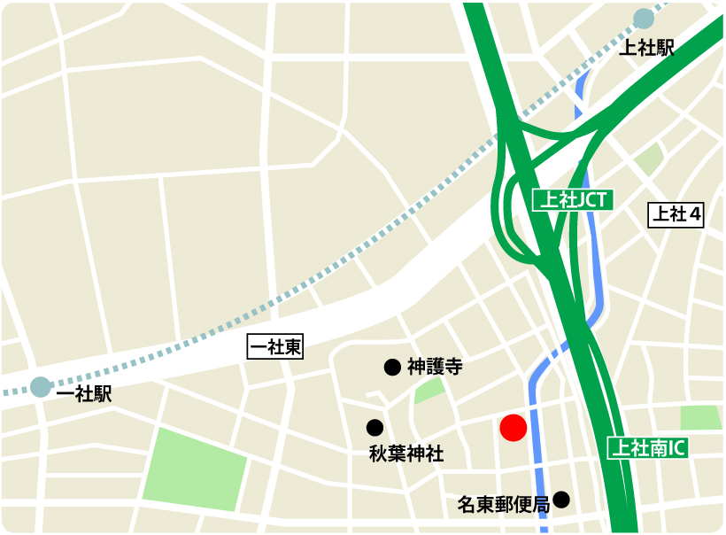 地下鉄東山線「一社」もしくは「上社」から徒歩10分